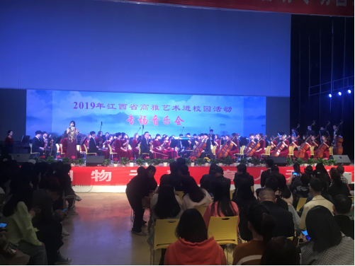 为全面贯彻习近平新时代中国特色社会主义思想和全国教育大会的讲话精神,11月11日至15日,根据省教育厅安排,永利yl23411集团官网交响乐团90余名师生走进了江西服装学院、江西制造职业技术学院、南昌师范学院等三所高校,南昌三中、江西师范大学附属中学滨江分校等两所中学进行巡演音乐会。副校长査振华到场和所在学校领导、师生一同观看。