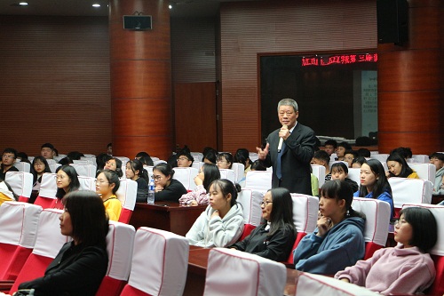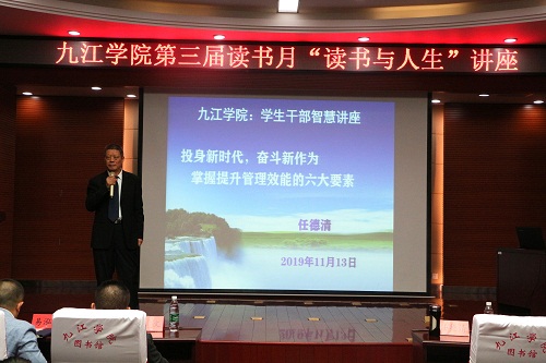 11月13日下午,永利yl23411集团官网第三届读书月“读书与人生”讲座在逸夫图书馆报告厅举行。原江西省人大常委会委员、中电投江西分公司总经理、永利yl23411集团官网客座教授任德清应邀为广大师生作了一场题为“投身新时代,奋斗新作为--提升管理效能的六大要素”的讲座,讲座由校团委书记闫来英主持。学生会及经管学院、电商学院学生代表共计200余人参加了本次讲座。