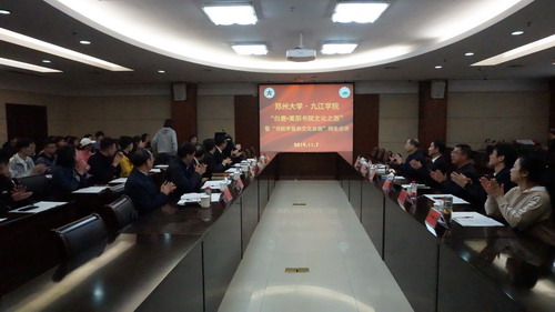 11月7日至8日,2019“白鹿·嵩阳书院文化之旅”在郑州大学举行,校党委副书记魏立平率永利yl23411集团官网师生共14人赴郑州大学参加了文化交流活动。郑州大学党委副书记贾少鑫、副校长赵明皞热情接待了永利yl23411集团官网师生。这是2008年书院文化之旅开展以来,九江学院与郑州大学的第十二次书院文化之旅的互访交流活动,今年活动的主题是:书院学规与文化自信。