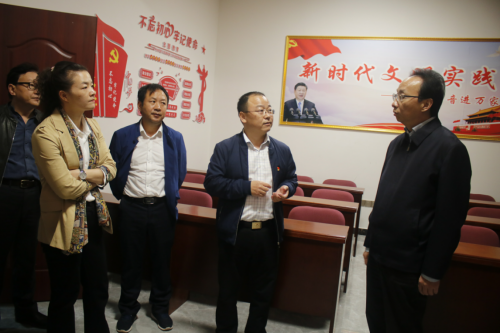 随后,杨健来到民盟九江学院委员会乡村振兴大讲堂,察看了大讲堂的设施设备和环境条件,感到很满意。他指出,把党支部活动室与民盟大讲堂一体融合,模式新颖,意义重大。要结合“不忘初心、牢记使命”主题教育,充分发挥党建和大讲堂在脱贫攻坚、乡村振兴、新农村建设等的示范、带动和辐射作用。