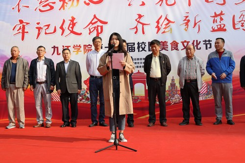 在热烈的掌声中,校长刘晓东宣布:九江学院第十五届美食文化节开幕!