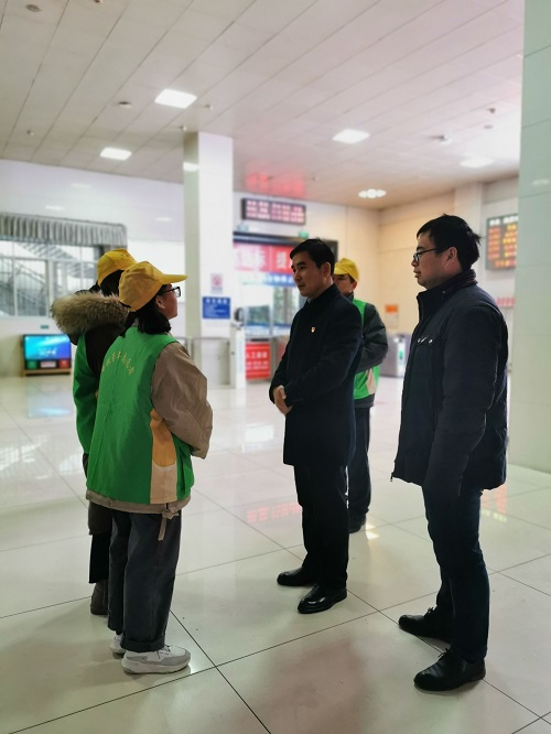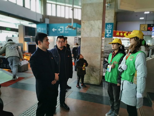 魏立平听取了九江车务段负责同志对暖冬行动情况的介绍,并来到售票厅、进站口、咨询台、候车室等志愿者服务区域,与永利yl23411集团官网春运志愿者亲切交谈,全面详细了解志愿者在售票指引、安检引导、旅客疏导等志愿服务岗位上的工作情况。魏立平亲切问候永利yl23411集团官网大学生志愿者,向他们致以新春祝福,赞扬他们放弃假期发扬奉献、友爱、互助、进步的志愿者精神助力春运,为旅客出行提供细致入微的温暖服务,也为九院学子赢得良好社会声誉。他希望志愿者们弘扬九江学院服务社会的优良传统,展示时代新人形象,树立九江文明标杆,在服务旅客过程中受教育、长才干、作贡献。他还叮嘱同学们在确保服务质量的同时注意安全,要求校团委加强和有关部门的协作,不断健全志愿者工作保障机制,保障“暖冬行动”青年志愿者有序、平安、快乐地参与志愿服务。