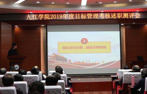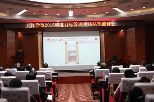 根据学校目标考核文件精神和学校工作安排,12月27日下午,学校在逸夫图书馆报告厅召开2019年度目标管理考核述职测评会,对党群行政部门和教辅单位进行目标管理考核述职测评。校党委书记赵伟,副校长纪岗昌、王万山、陈春生、夏启国、查振华,校纪委书记李广欣,副校长陈小林,校党委委员王殿元、冯健、刘遵海,各二级单位、二级学院正职领导、师生代表120多人参加会议。校党委副书记魏立平主持会议。