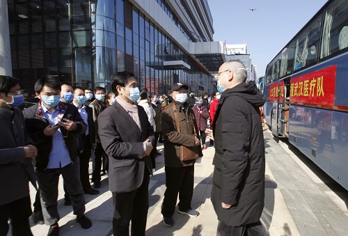 市委书记林彬杨在出征前一天作出重要批示:要求大家以坚定的信心、顽强的意志、精湛的医技、崇高的医德打赢这一战。市委副书记熊永强在出征仪式上,希望大家牢记习近平总书记的殷切嘱托,把人民群众生命安全和身体健康放在第一位,全力以赴投入到抗击疫情和救治患者工作之中。市政府副市长李军代表市政府向即将应召出征的附属医院医疗队员们表达敬意!