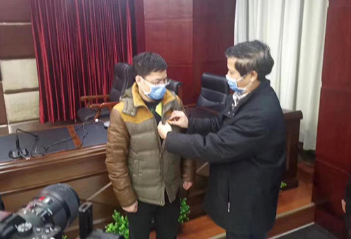 “出征”前党委书记张南华亲手给汪明雪佩戴党徽