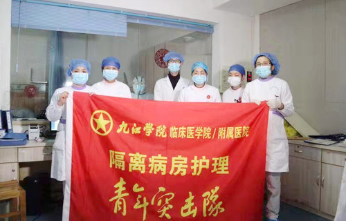 一身白衣赋予了他们勇气和能量,救死扶伤的责任让他们忘却了畏惧。在这场突如其来的疫情抗战中,九江学院临床医学院/附属医院共青团组织和青年职工们主动“出列”,充分发扬“党有号召、团有行动”的优良传统,调动力量,积极作为。作为九江学院临床医学院/附属医院抗击新型冠状病毒肺炎的主战场,隔离病房的护理青年突击队员们不畏艰难,始终守护着一线阵地。