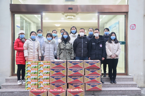 附近超市的刘经理通过九江红十字会为九江学院附属医院送来大量鲜果,他说:“目前口罩、消毒液等防护用品紧缺,我们实在没有办法搞来医疗防护物资,但我们真心敬佩和感谢你们奋战在抗疫一线。”
