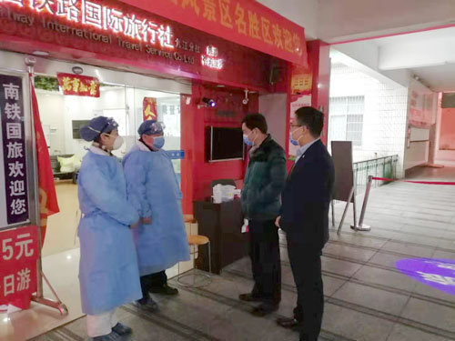 随后,杨耀防还前往火车站,看望附属医院在火车站开展体温筛检的工作人员。他强调,附属医院党委和行政要增强“四个意识”、坚定“四个自信”、做到“两个维护”,深刻认识做好新型冠状病毒感染的肺炎疫情防控的重要性和紧迫性,做到守土有责、守土尽责。附属医院在防控疫情斗争中经受考验、深入第一线,不忘初心,勇担使命。医院领导要加强统筹调度,全院上下要联防联控,保证疫情防控各项工作有力有序开展;同时要关心和保护好一线医务工作人员,做好防护设备配置、防护措施落实。
