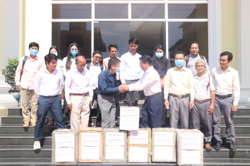 4月28日上午,九江学院助力柬埔寨皇家科学院抗击疫情防疫物资捐赠仪式在柬埔寨皇家科学院恩达黛薇大楼举行。柬埔寨皇家科学院院长、柬埔寨皇家科学院孔子学院理事长宋独(SOK Touch)院士,柬埔寨皇家科学院孔子学院柬方院长苏碧娜女士(VUTH Sopheakna)、中方院长柴克清及柬埔寨皇家科学院在岗教职员工出席了本次捐赠仪式。
