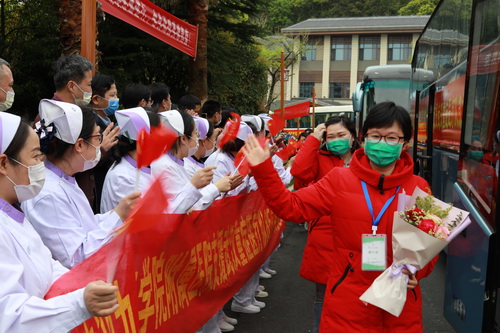“没有一个冬天不能逾越,没有一个春天不会到来”。当初怀着“不破楼兰终不还”的勇气和决心毅然奔赴疫情前线,今天这群“最美逆行者”们满载着武汉人民的感激之情凯旋回归家乡。