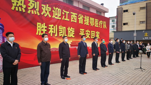 九江市委书记林彬杨,九江市委副书记、代市长谢来发,副市长李军,江西省卫健委副主任龚建平,江西省退役军人事务厅副厅长雷起平出席仪式。谢来发代市长致辞:“你们出色地完成了党和人民交给你们的光荣任务,是最美的天使,是真正的英雄,是新时代最可爱的人,全市人民为你们点赞,全市人民为你们感到骄傲和自豪。”