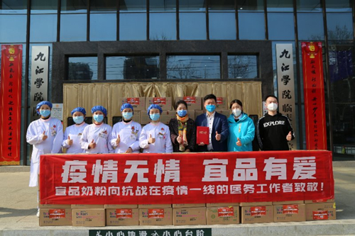 入驻九江恒盛科技园的黑龙江宜品乳业集团有感于九江学院附属医院医护人员舍小家顾大家,不畏艰险、挺身而出,冲在抗疫“最前线”,为保护人民生命健康作出了重大贡献,通过中国红十字会向九江学院附属医院捐赠黑龙江名牌产品“宜品”婴幼儿配方奶粉480罐,以此表达对医护人员们的关心与敬意。