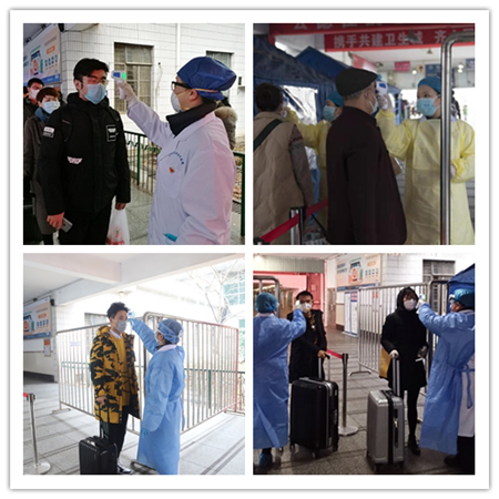 在抗疫后方,行政、后勤等支部的党员们也在昼夜奋战,数据汇总、上传下达、各方协调、筹措物资,他们全身心投入到疫情防控工作中,当好疫情阻击的勤务员、群防群控的组织员、防控知识的宣传员。老党员党院办主任占永平日夜驻守在火车站体温监测哨点上,连大年三十的晚上仍不例外;工会主席、行政党支部书记夏莉娜为了节省医用物资,只穿着普通的白大褂值守在火车站,因长时间疲劳“作战”,引发全身荨麻疹,万不得已才退下一线,她还带着党员田芳、王敏等同志利用周末时间,自掏腰包买菜到支援湖北队员家里帮忙做饭、照顾小孩;疫情肆虐、物资短缺,纪检监察室副主任刘慧娟刚做完眼睛光动力手术,她顾不上休息,接收、整理、清点大量捐赠物品,奔波于物资分装点与医院之间,保障物资第一时间发放到前线医护人员手中。