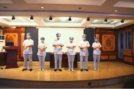 来自各科室的优秀医务人员为大家演示六步洗手法。大家严格按步骤进行,动作标准、连贯,给大家作了很好的示范,进一步增强了大家的手卫生意识。