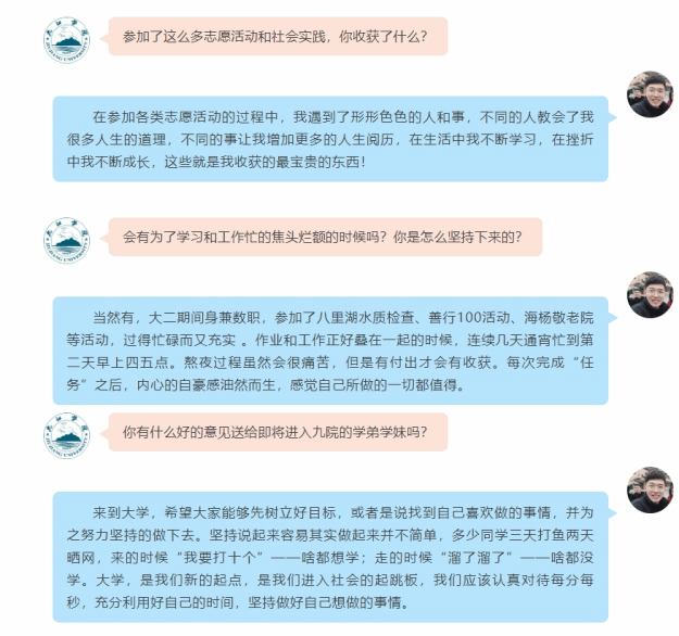 “感谢学校能够给予我许多展示自我的机会和平台,作为一名九院人,我感到骄傲!”