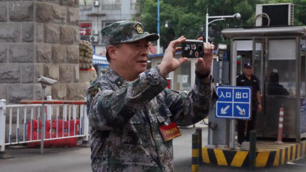 “当年我就住在这里的三楼。”将军又拿出手机对着濂溪宾馆三楼的一个窗户,拍起照来。1999年夏天,时任旅长的傅勇将军带领官兵第二次驰援九江,他就住在永利yl23411集团官网濂溪宾馆的三楼房间。