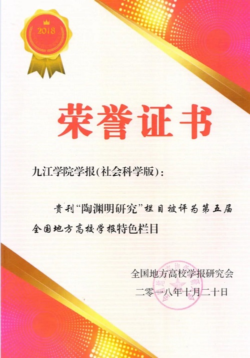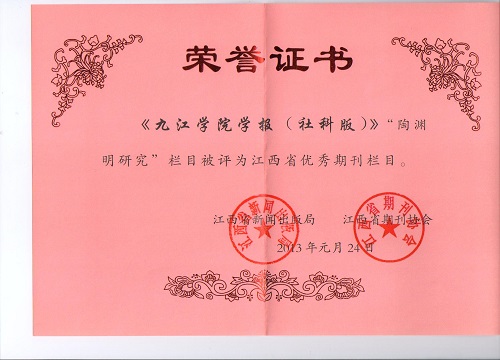(4)担任《九江学院学报》“陶渊明研究”专栏的责任编辑,2007年被评为江西省高校学报优秀编辑工作者。2005年至2009年在学报编辑部工作,2017年至今担任学报编辑部主任,再度负责“陶渊明研究”专栏的责任编辑,编辑刊发了众多的陶研论文。