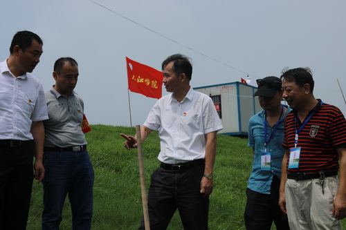 7月9日上午,校党委书记赵伟到赛城湖城西港堤防汛一线,看望慰问坚守在堤坝上的干部职工,现场检查指导防汛工作。