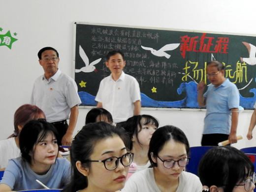 新学期伊始,校园内到处呈现出生机与活力。8月31日是本学期学生正式上课的第一天,早上7点50,校领导赵伟、刘晓东、魏立平、纪岗昌、王万山、陈春生、杨耀防、夏启国、查振华、李广欣、陈小林在教务处、党院办和各二级学院负责人的陪同下,深入到各校区的各栋教学楼和教学点检查新学期第一课情况。
