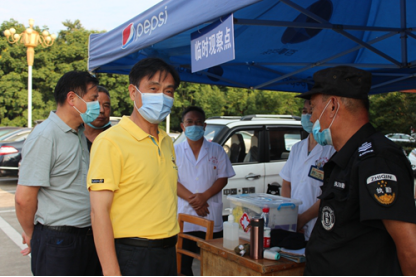 在西门临时观测点检查疫情防控工作