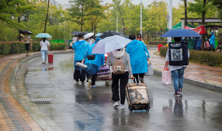 与往年不同,今年新生报到后便不能再出校门,两位来自内蒙古的新生家长眼神里满是对孩子的不舍,但是他们依然对学校的迎新工作和安排表示理解和满意,“虽然今天是雨天,但是学校给我们提供了雨衣,非常贴心。我们也会和孩子去配合学校在这种特殊时期的各种安排布置。”他们说,孩子报考了经管学院,期望他在九院的四年有收获,能成长。