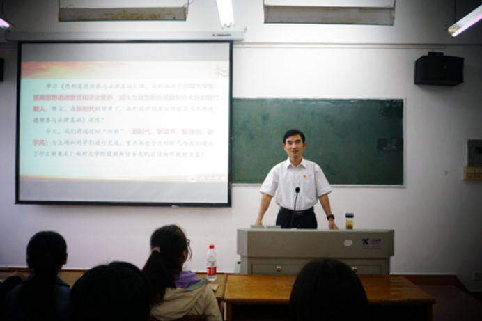 “同学们,今天是你们的大学第一课,同时也是步入大学的第一堂思政课。”在竞知楼313教室理学院A2021班思政课上,赵伟从“新时代、新境界、新理念、新学风”四个主题展开讲授,勉励同学们确立新目标、开启新启程。他指出,经过长期努力,中国特色社会主义进入了新时代,这是我国发展新的历史定位。新时代是我们理解当前所处历史方位的关键词,做什么样的人,怎样做人,怎样的生活才有意义,怎样的人生追求才有价值等,这一系列的人生课题,都需要对新时代有深入的了解和真切的感悟。有新境界,就是青年大学生应该以有理想、有本领、有担当为根本要求,夯实综合素质基础,着力提升思想道德素质和法治素养,展现新的风貌、新的姿态,成为中国特色社会主义事业的合格建设者和可靠接班人,成为走在时代前列的奋进者、开拓者、奉献者; 要树立自主学习、全面学习、创新学习、终身学习的新理念;要崇尚勤奋、严谨、求实、创新的新学风。