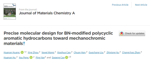近日,永利yl23411集团官网化学与环境工程学院、星火有机硅产业研究中心黄华南博士在英国皇家化学学会旗下的材料及能源化学领域国际顶尖期刊Journal of Materials Chemistry A(影响因子11.301)在线发表了题为“Precise molecular design for BN-modified polycyclic aromatic hydrocarbons toward mechanochromic materials”的研究成果。该成果被遴选为当期内封面文章。
