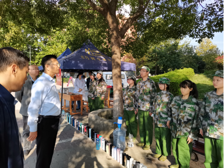 在军训医疗服务点,刘晓东叮嘱正在服务点休息的同学,要注意身体、张驰有度、循序渐进地开展训练活动。他还要求相关负责人员在军训过程中要用心关爱学生,并做好保障工作,确保顺利完成2020级军训工作。