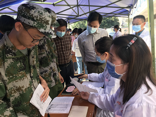 10月12日上午,陈小林来到校医院检查指导了2020级新生入学复查体检工作。检查过程中,他听取了校医院对本次体检工作的情况的汇报,现场察看了体检的流程和进度,详细了解了医院临时隔离室的工作情况。他对校医院今年整个体检工作的安排感到满意,并慰问了部分体检工作人员和在医院门诊就诊的学生。