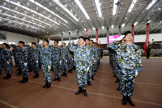 男标兵连和女标兵连代表2020级新生进行了汇报表演。他们整齐的队列、洋溢着青春朝气的面庞、规范标准的动作赢得了全场一阵又一阵的掌声与欢呼声。