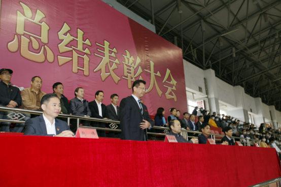 下午2点半,大会在庄严肃穆的国歌声中正式开始,全体人员起立,唱国歌。