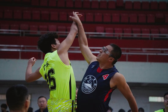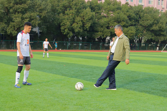 下午三点半,北区田径场立刻沸腾起来。进入决赛的浙江校友联队和广东校友联队在夏启国的带领下进入场地合影留念并相互握手致意,随后夏启国分别为足球赛、篮球赛开球。