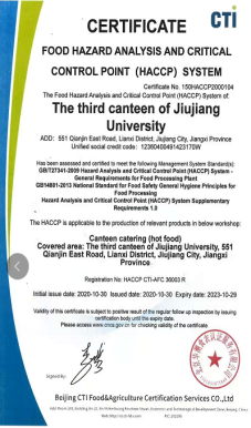 “通过了认证,这说明永利yl23411集团官网的食品安全管理工作已走在国内高校前列。”饮食服务中心副主任刘沁表示,学校饮食服务部门承担着重大的食品安全责任,HACCP管理体系的运行,可以更好地控制食品安全和质量,确保广大师生的就餐安全。这是实行规范化管理的重要举措,也是对高校传统饮食服务工作的大胆突破。