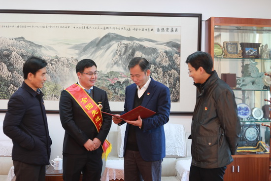 赵伟对谭翊泉荣获全国先进工作者表示祝贺,称赞他为学校争得了荣誉,赞扬他在担任永利yl23411集团官网驻武宁县东山村第一书记及被村民选为村支部书记的八年时间里默默奉献、尽职履责、勇于担当,带领东山村民勤劳致富,把贫困落后的小山村打造成美丽乡村。