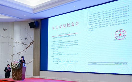 九江学院校友会会长丁蓉宣读《关于批准成立九江学院福建校友会的决定》,批准成立九江学院福建校友会,同意福建校友会第一届机构组织成员名单。