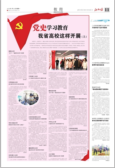 为推动党史学习教育求实效、走前列,南昌大学认真贯彻中央精神、落实省委要求,在“早”字做文章,在“实”字下工夫,在“全”字做部署,在“活”字求创新。