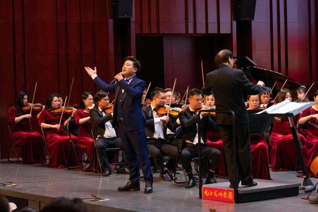 由温淑萍老师、汪笑怡老师与九江学院艺术学院合唱团联袂带来的《三月桃花心中开》与《不忘初心》将本场交响音乐会推向高潮。