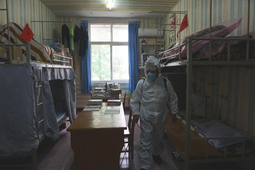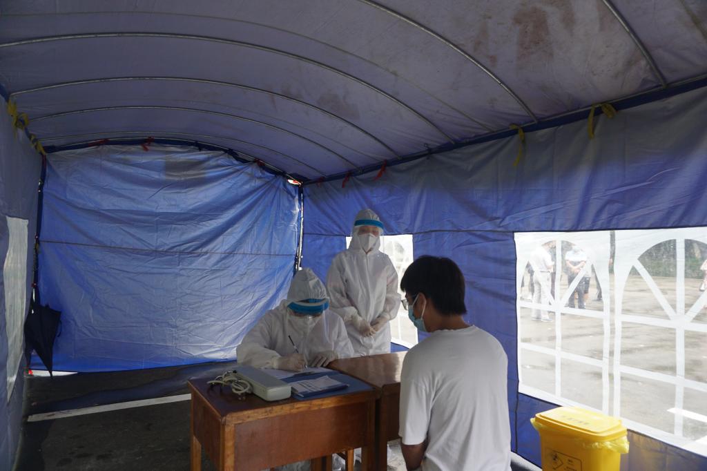 校医院医护人员身穿防护服到达临时隔离点后,对学生进行全面检查、问诊、询问旅居史、体温复测,并将情况逐级向预防保健科、医院领导、学校防控指挥部办公室报告,得到指令后立即联系120,同时安排消毒人员、保安人员......待120急救车赶到,校医院医护人员与120的医护人员做好交接并将学生转运到附属医院发热门诊就诊,消毒人员分别对学生宿舍、临时隔离点进行消毒......经过附属医院发热门诊诊查,核酸检测结果检查为阴性,医生诊断为感冒伴咽喉红肿发炎,警报解除......