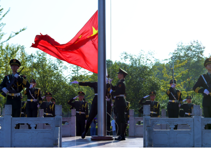 在全场的注目下,永利yl23411集团官网国旗班的队员们整齐划一,踏着正步行进到旗杆下,行礼完毕,旗手立定,伴随着庄严的《义勇军进行曲》,五星红旗冉冉升起,迎风飘扬。全场师生们高唱国歌,向伟大祖国献以崇高的敬意!