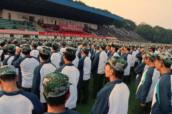 7000余名2021级新生,全体2021级新生班辅导员、班主任,九江军分区及永利yl23411集团官网各二级学院、相关部门负责人参加了大会。