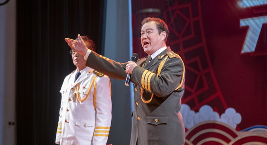 副校长王万山、杨耀防即兴为现场观众演唱了歌曲《涛声依旧》和《中国功夫》,受到师生们热情的欢呼声,将整场晚会气氛推向了高潮。