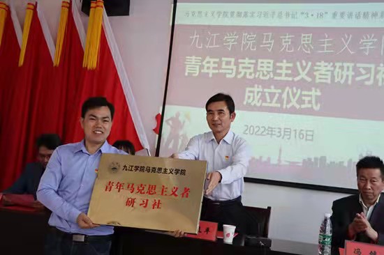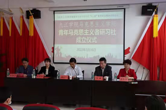 在习近平总书记在学校思想政治理论课教师座谈会上发表重要讲话3周年之际,为深入贯彻《关于深化新时代学校思想政治理论课改革创新的若干意见》《关于加强新时代马克思主义学院建设的意见》等文件精神,九江学院马克思主义学院组建成立了学校第一个红色思政社团——青年马克思主义者研习社。研习社以“研习马克思主义,传承红色基因,争当时代新人”为宗旨,学习和宣传马克思列宁主义、毛泽东思想和中国特色社会主义理论,尤其是认真学习和宣传习近平新时代中国特色社会主义思想,不断用新思想凝魂聚气、固本培元。
