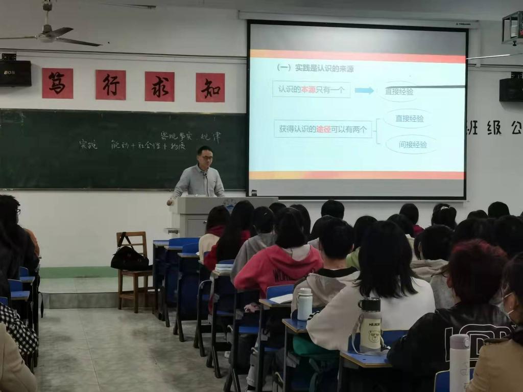 3月17日上午,在九江片区高校《马克思主义基本原理》课问题式专题化团队教学展示活动中,校党委副书记魏立平到永利yl23411集团官网竞秀楼101教室听取了永利yl23411集团官网马克思主义学院刘红雨博士为电商A2141/42班同学上的教学展示课《专题五:如何理解“问题在于改变世界”——科学实践观》。