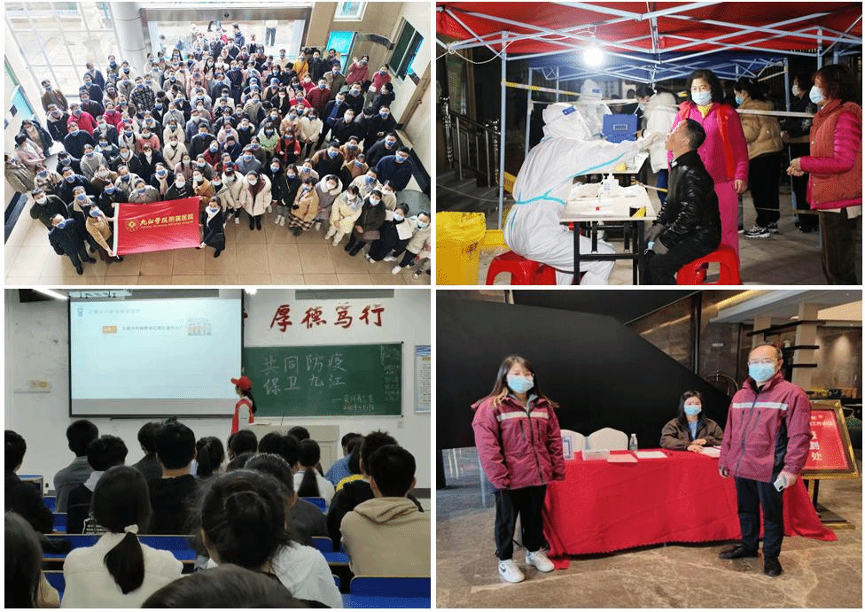 建强堡垒,压实责任。学校党委组织部发出《关于在疫情防控工作中发挥基层党组织战斗堡垒作用和党员先锋模范作用的通知》,各基层党组织把疫情防控作为当前重要任务,从严从紧、从细从实抓好各项工作,做到疫情防控和教育教学“两不误”。全校4000余名师生党员在教学科研、管理服务一线带头落实疫情防控措施,听从指挥、服从大局,做好个人防护,确保正常教育教学秩序。基层党组织和党员到社区开展“双报到”,协助社区做好疫情防控具体工作。附属医院组织50名医护人员支援南昌核酸检测采样,组织200名医护人员助力九江市集中核酸检测工作。医学院36名预防医学实习生在九江市各县区疫情防控一线彰显青春本色。资源环境学院注重做好疫情防控心理疏导,让师生以更加积极的心态应对疫情。