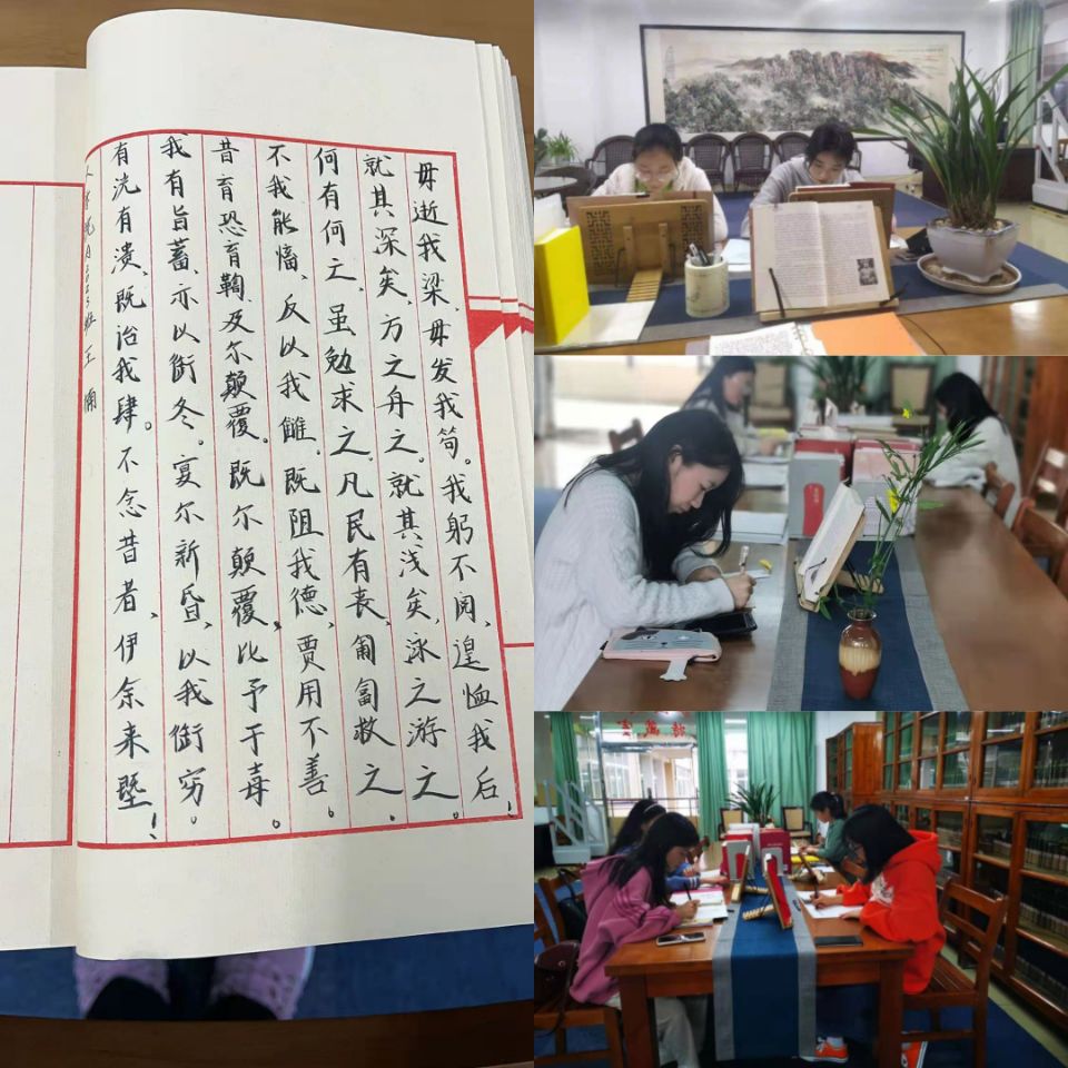 图书馆针对大学生成长阶段特点,以培育社会主义核心价值观、培育家国情怀,培养青年学生责任担当为目标,充分发挥第二课堂作用,通过策划组织阅读推广活动,有效进行理想信念教育,进一步弘扬中华优秀传统文化、革命文化、社会主义先进文化,助力校园思政建设。2021年党史学习教育期间,图书馆组织开展了“静墨微澜·红色经典”抄书接力活动,精心遴选《中国共产党简史》《中国共产党历史简明读本》《建国大业》《建党伟业》《建军大业》等馆藏红色经典书籍,专门开辟了优雅宁静的抄书场地,提供抄书本和笔具,供永利yl23411集团官网师生读者抄写。据统计,仅短短一个月内,累计入馆抄书的师生已达102人次,组团抄书的队伍已有7个,人数达200多人。管理学院会计A2022班吴鸿博同学说:“身为共青团员,抄写红色书籍,给党献礼,意义非凡。我们可以在抄书中学习先烈的革命精神,更加深刻地体会美好生活的来之不易,培养我们的爱国精神。”