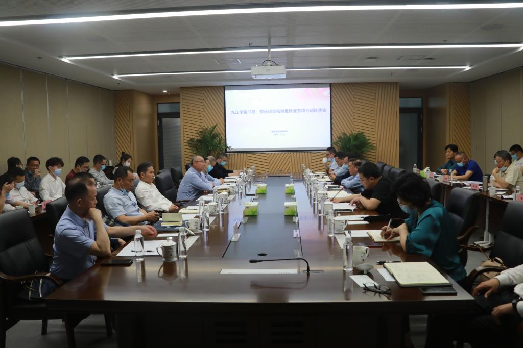 在鄱阳湖生态科技城科创中心六楼2号会议室,校地双方领导与15家科技城入驻企业代表进行了座谈。