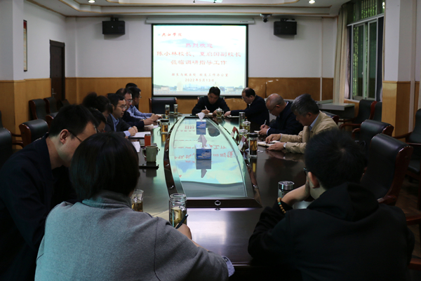 5月13日上午,校长陈小林深入招生与就业处、校友办调研指导工作,并在二号行政楼三楼会议室主持召开座谈会。副校长夏启国一同调研。招生与就业处、校友办全体在岗工作人员参加会议。
