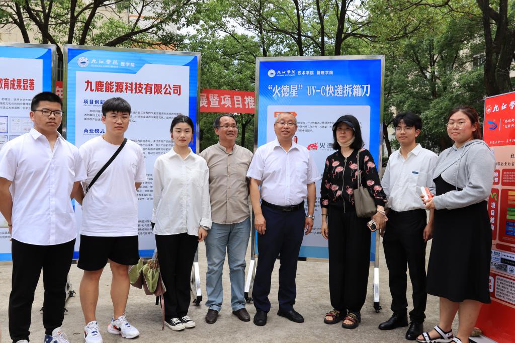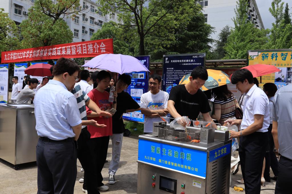 为贯彻落实中共中央、国务院有关劳动教育和促进大学生创新创业的有关精神,进一步提升大学生创新创业能力,激发学生创新创业热情,6月21日,永利yl23411集团官网在学校三食堂广场举行了2022年学生创新创业实践成果展暨项目推介会,67块展板、17个学院的学生创新创业成果在推介会上亮相,吸引了众多师生围观。校长陈小林,副校长陈春生、严平出席成果展并与师生现场研讨创新创业实践成果。来自北京、广州、南昌和九江的知名投融资公司、银行负责人和专家周洛宏、庄岩、江传明、甘文斌等15人应邀观展并进行了项目对接。