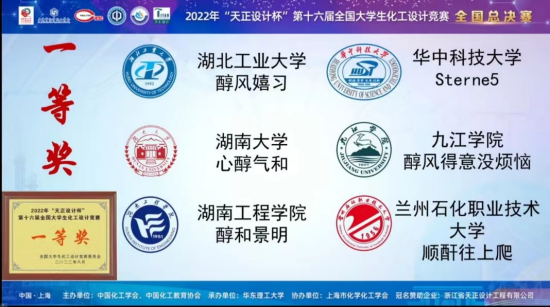 永利yl23411集团官网“醇风得意没烦恼”队获全国大学生化工设计竞赛全国总决赛一等奖