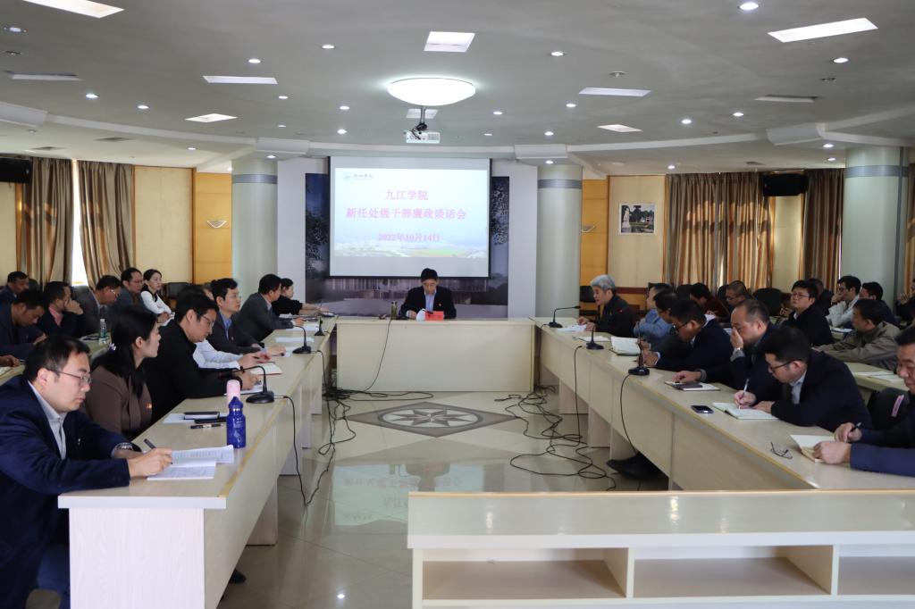 为压实全面从严治党政治责任,强化干部监管,10月14日,学校召开新任处级干部集体廉政谈话会。校党委委员、纪委书记李广欣出席会议并讲话。他强调,新任处级干部要坚持以习近平新时代中国特色社会主义思想为指导,珍惜岗位、积极担当作为,感恩组织、始终心存敬畏,努力践行忠诚干净担当要求,不辜负组织的信任和重托。校纪委副书记欧阳益群主持会议。